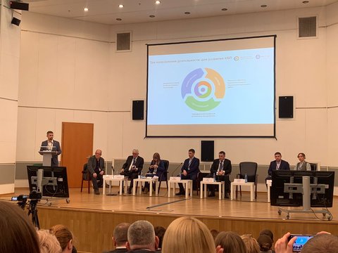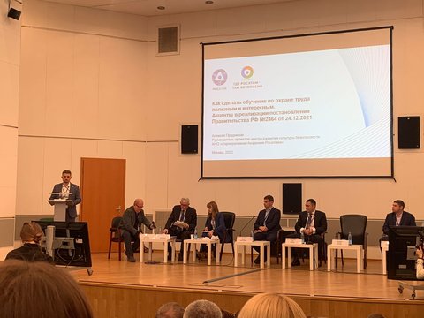 Алексей Прудников поделился опытом и рассказал о образовательном курсе на тему «Развитие культуры безопасности», о различных форматах и подходах, которые применяются для обучения сотрудников Госкорпорации: курсах «Навигатор обучения», «Фабрики безопасности», стресс-центрах, применении VR- и AR-технологий. Особое внимание он уделил вопросу подготовки тренеров, которые могут проводить обучение по охране труда (ОТ) с учетом развития культуры безопасности.